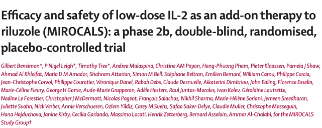 5月9日,国际顶尖医学期刊《柳叶刀》(The Lancet)发表了一篇题为:Efficacy and safety of low-dose IL-2 as an add-on therapy to riluzole (MIROCALS): a phase 2b, double-blind, randomised, placebo-controlled trial 的临床研究论文。