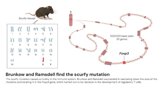 3.2001 年:布伦科团队锁定鳞屑小鼠的致病元凶 ——FOXP3 基因突变,而该基因正是 Treg 细胞的「总开关」;