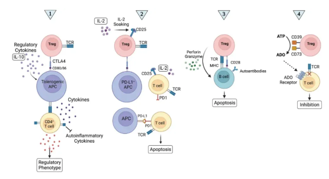 这种功能依赖 FOXP3 驱动的转录调控网络,也依赖其表面高表达的 IL-2 受体 α 链(CD25)—— 这让 Treg 细胞在竞争有限 IL-2 时占据优势,进而强化免疫抑制效果。